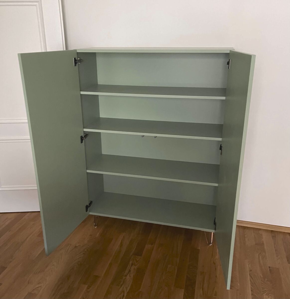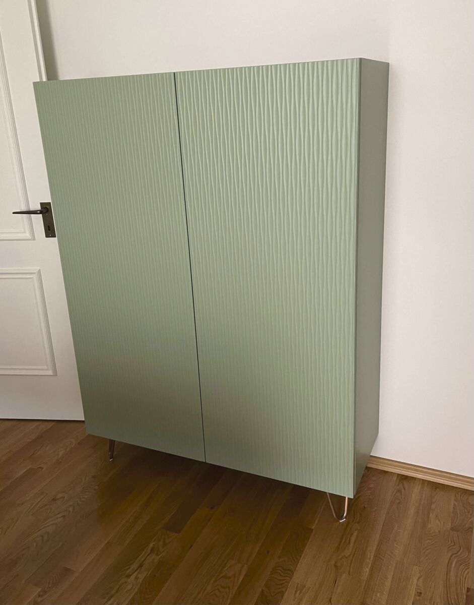 Highboard mit Strukturtüren auf Metallfüssen